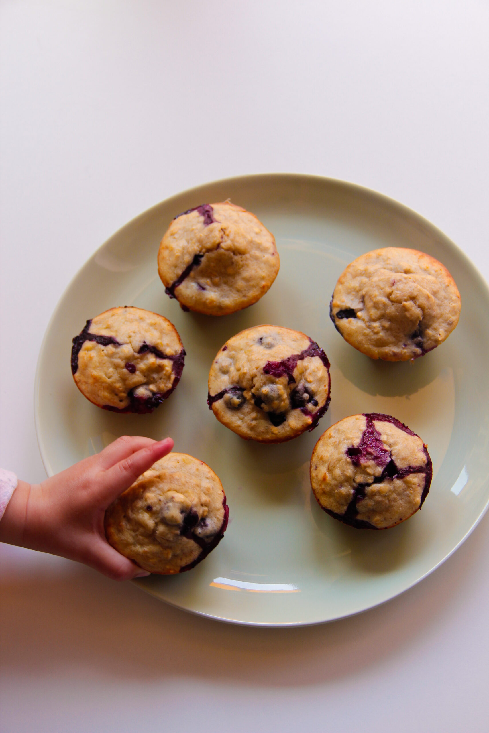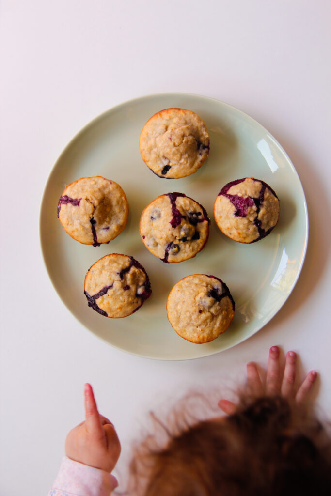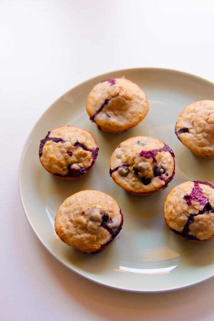 Muffins healthy à la banane, petits flocons d’avoine et myrtilles